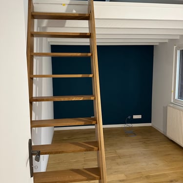 Nous avons également proposé à notre client ainsi qu'à la maîtrise d'oeuvre de revêtir les mezzanines d'un parquet en liège, solution écologique et durable.